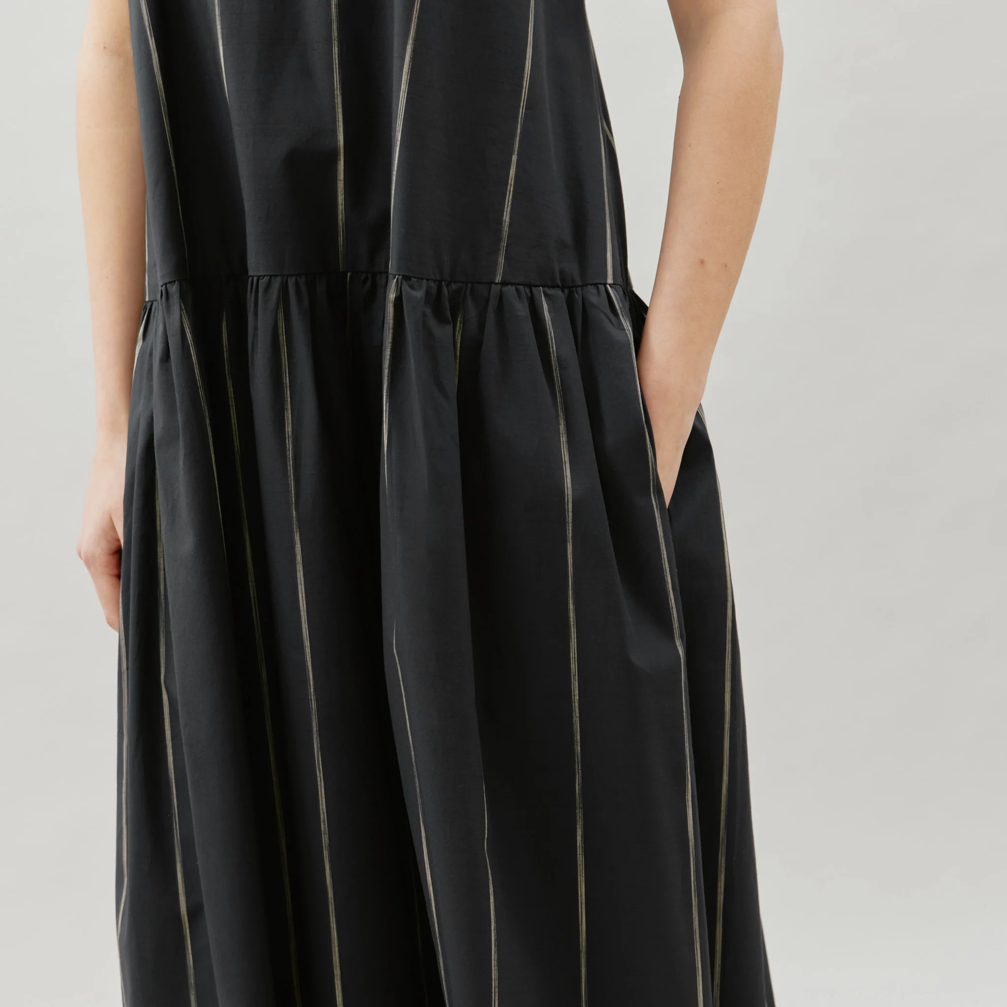 A relaxed fitting midi dress crafted from a soft and cool striped cotton. This sleeveless dress features a chic scoop neck, a drop gathered waist detail that flatters your figure and finished off with side pockets. Perfect for any occasion, this dress adds a touch of timeless style to your wardrobe.