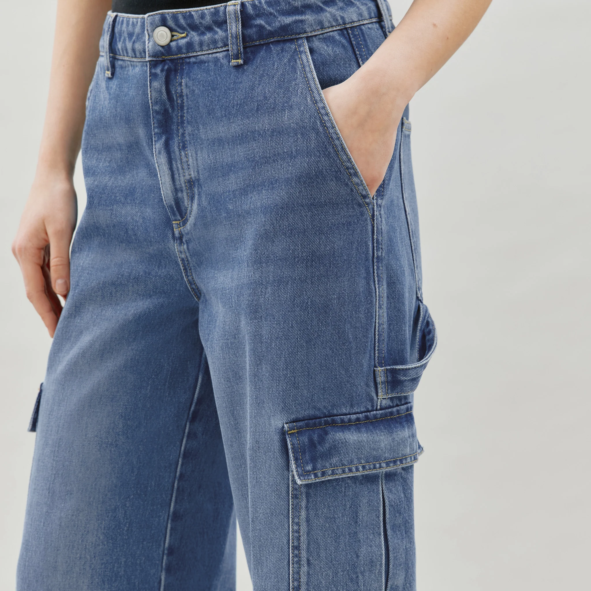 Indulge in luxurious comfort and style with our Cargo Jeans. Made from organic cotton, this mid wash denim boasts cargo style pockets for practicality and fashion-forward appeal. Elevate your wardrobe with our premium and sustainable Cargo Jean.