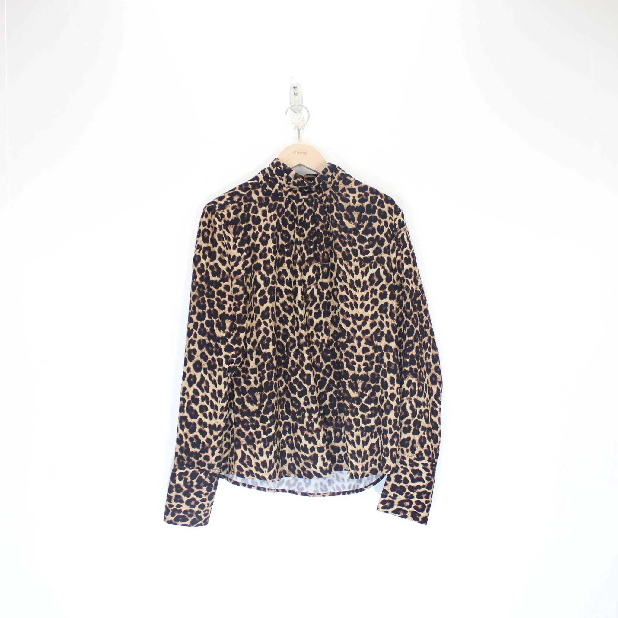Take a walk on the wild side with this effortlessly chic animal print top, featuring a gathered funnel neck and a self-covered button fastening. The long sleeves are elegantly gathered onto the shoulders and finished with deep cuffs. Crafted from the softest and sustainable ECOVERO⢠viscose, this top showcases a timeless leopard print, adding a touch of sophistication to your look.Ā