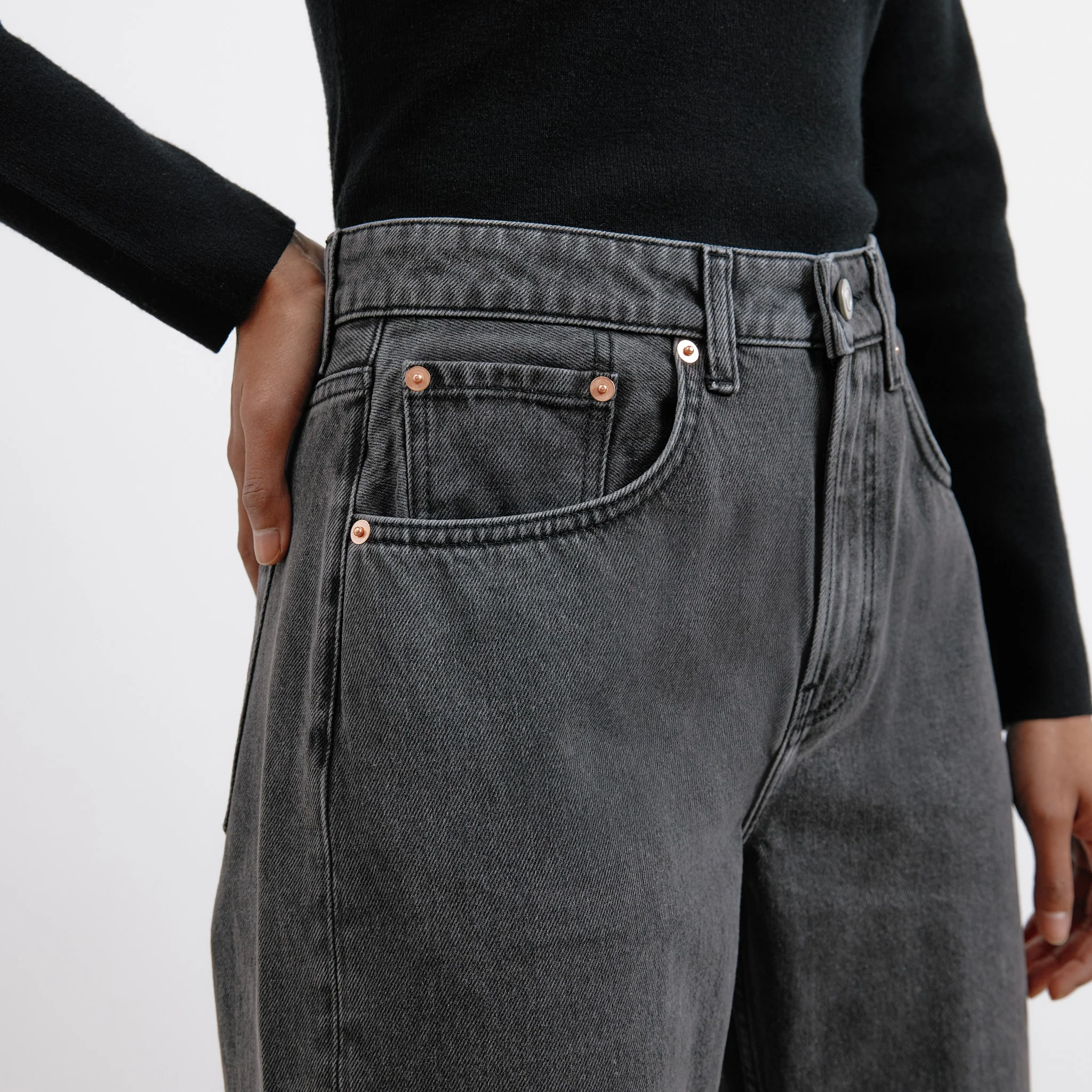 Our Black Relaxed Jeans are cut in a flattering relaxed silhouette and a looser leg. Featuring the classic 5 pocket detail and concealed zip fly. Crafted from 100% organic cotton and made using a sustainable laundry process.