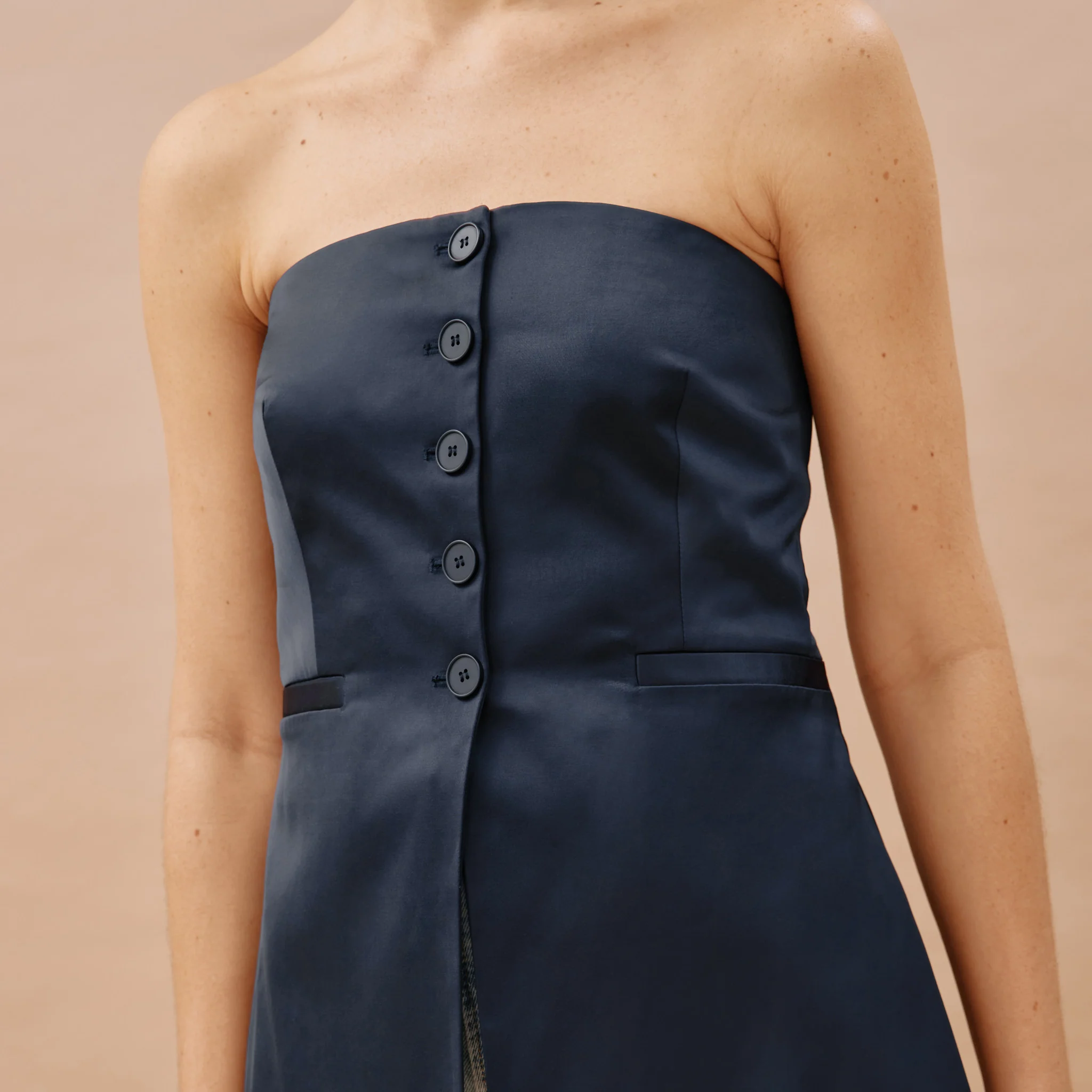 Navy Satin Bandeau Top